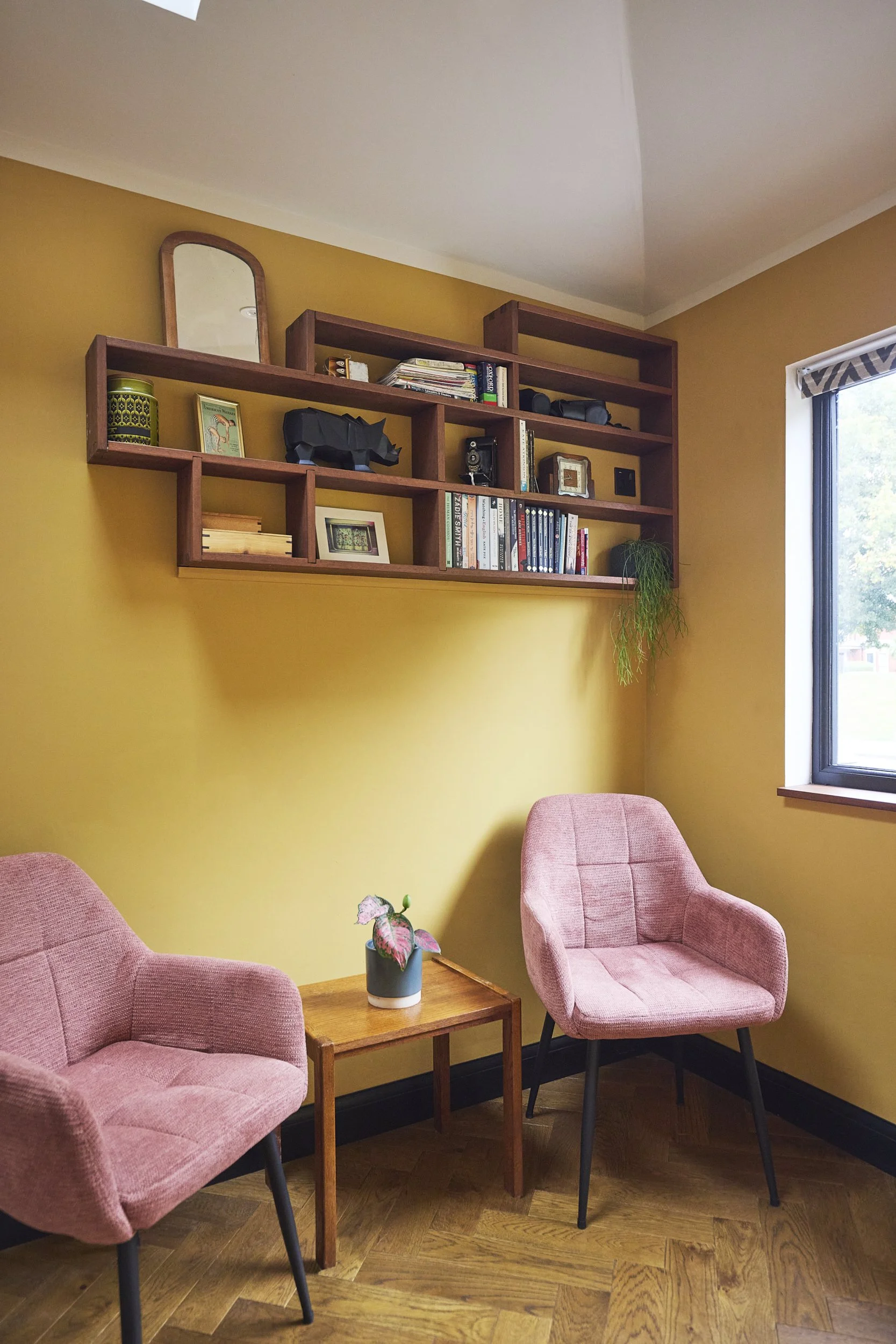 These adjoining sitting rooms had bags of character and natural light but they were not being used to anywhere near their full potential. The double doors had been removed, with the doorframe boarded up, and the doors themselves left standing outside. The fireplaces had been decommissioned and some dubious decorating choices had been made.